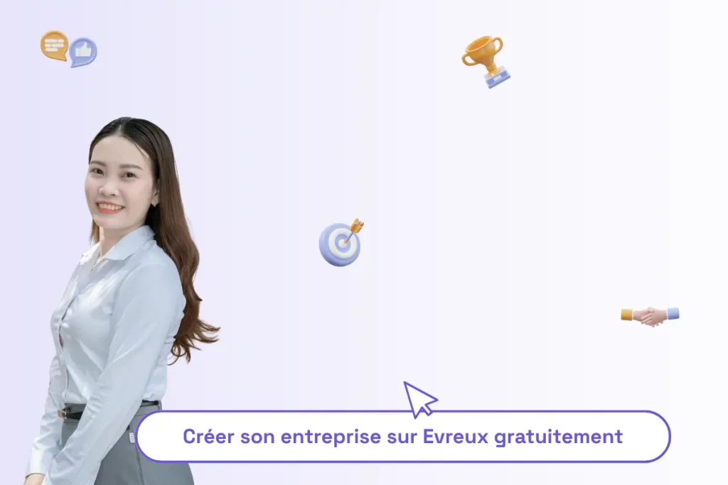 une femme professionnelle avec une phrase permettant d'illustrer l'article : "créer son entreprise sur Evreux gratuitement"